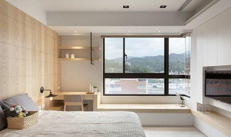 The wood veneer is the main focus here, and the wall extends from the desk to the bay window to the TV cabinet. The rustic feeling makes the space a lot softer, this space is neither simple nor high-profile.